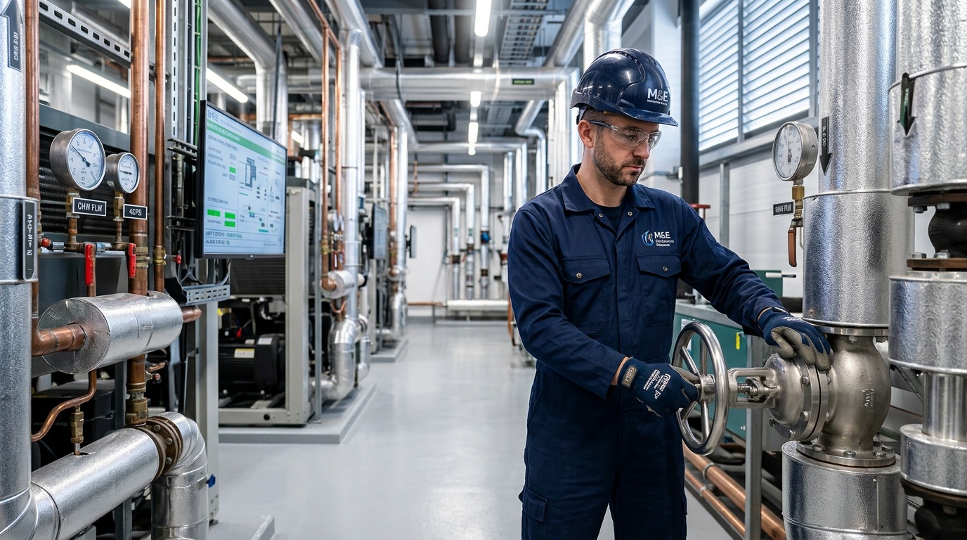 M&E solutions are the services and strategies designed to manage a building's mechanical and electrical systems. For M&E Maintenance Solutions, this means specialized commercial HVAC services, including planned preventative maintenance, 24/7/365 support, and the integration of sustainable technologies like heat pumps and solar PV. We aim to deliver guaranteed uptime and traceable compliance for commercial buildings across the UK.